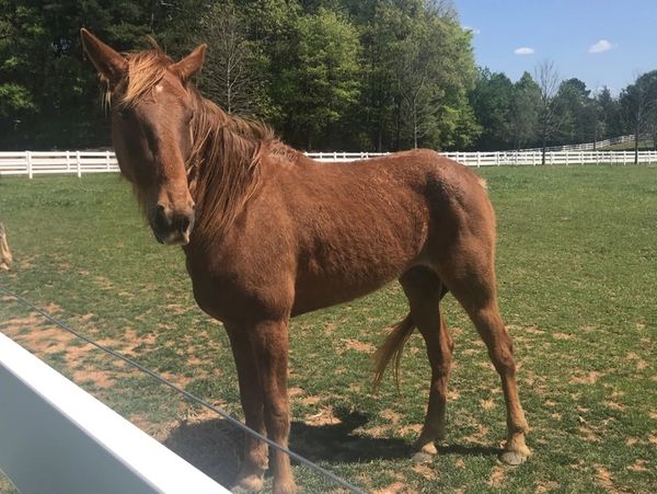 So many things can cause it to become too difficult to keep a horse that you love. Health issues, financial problems, the distance away you must keep your horse, or not knowing if the horse is receiving the necessary care. We received a call from an owner who was at wit’s end concerning her horse’s failure to gain weight. Several veterinarians were consulted and still, the horse was not gaining. The gelding was a 5-year-old registered Tennessee Walking Horse. Despite his young age, the photos the owner sent showed a horse with almost no chest, a skinny hind end, ribs showing, and U-necked. He would be considered a two on the body scoring. It became evident that health issues were preventing the young horse from getting the help he needed. We contacted the owner, told her of my concerns, and made the offer to pick up the young guy. It seemed the family was just overwhelmed and we’re happy we’re able to help. The trailer was readied – windows opened, hay-filled, halters checked, and the gas tank filled. The plan was to leave late afternoon and head to Mecklenburg County to pick up the horse. When we arrived the first thing we noticed was how gorgeous the property was and that all the other horses appeared to be in wonderful condition. Often individuals just do not have the knowledge or experience necessary to successfully put weight back on a horse in poor condition.